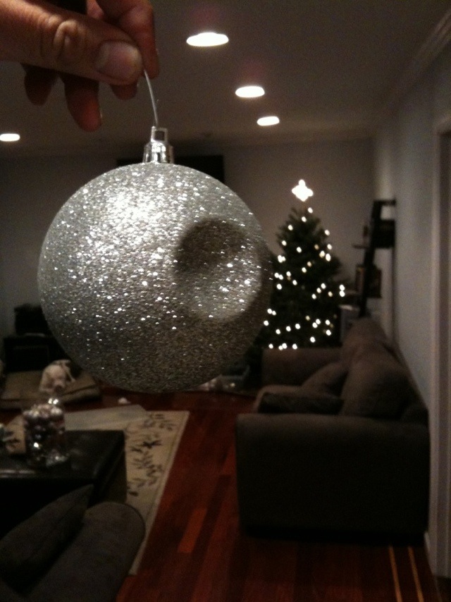 Today, one of the redeeming parts of Christmas is the fact that my wife tries so hard every year to get me to adopt a redeemed Christmas narrative. While it is a slow and painful process, I think it’s starting to make my heart grow a little bit bigger. The picture in this post is of my favorite ornament. It’s a sparkly round ornament that I accidentally dropped a few years ago and dented. I lovingly call it, “the Death Star”. Every year since, I have to hang up the Death Star first in the very center of the tree. Perhaps it serves as a metaphor for a slow redemption and redefinition of my sentiments towards Christmas.