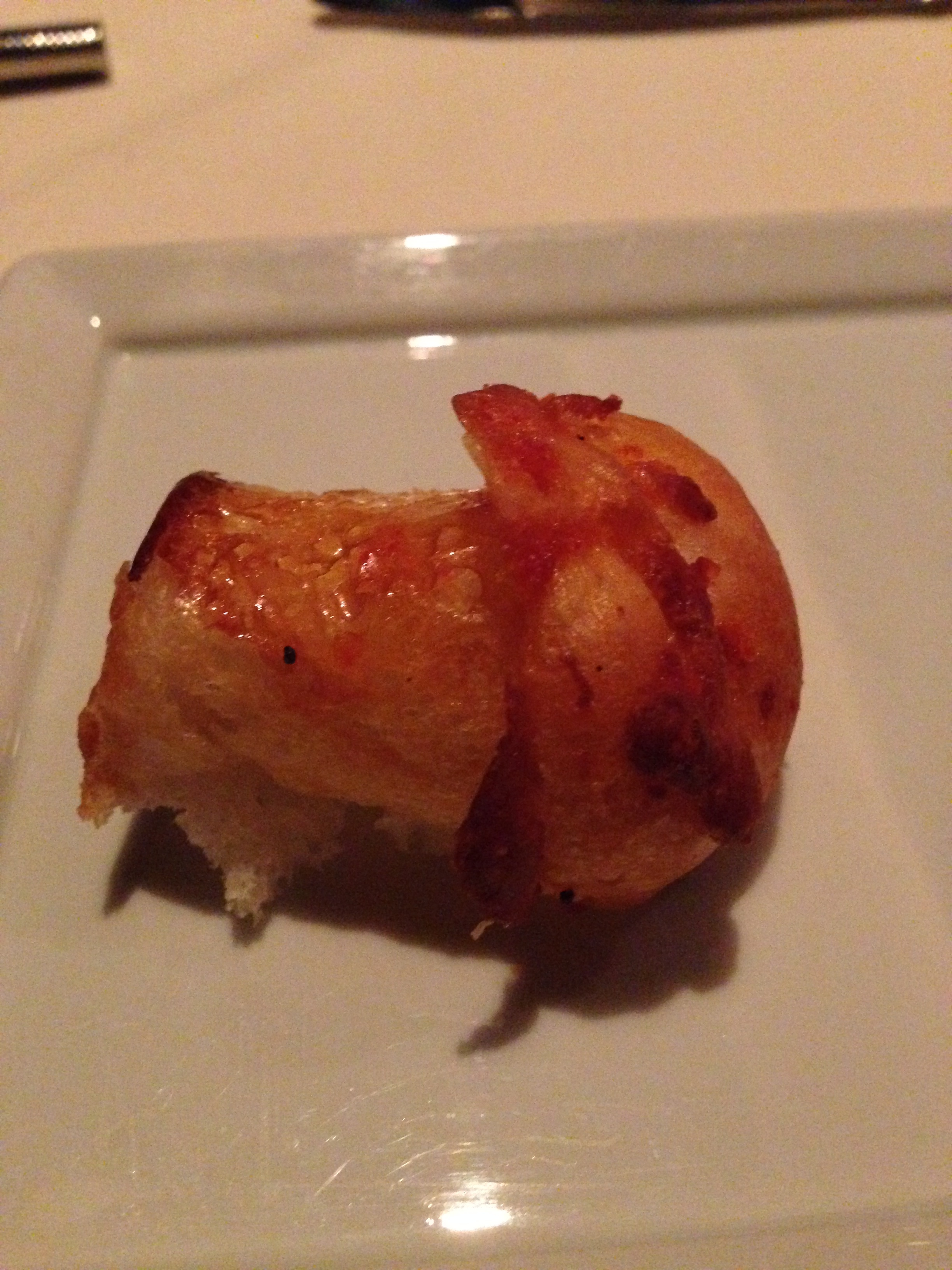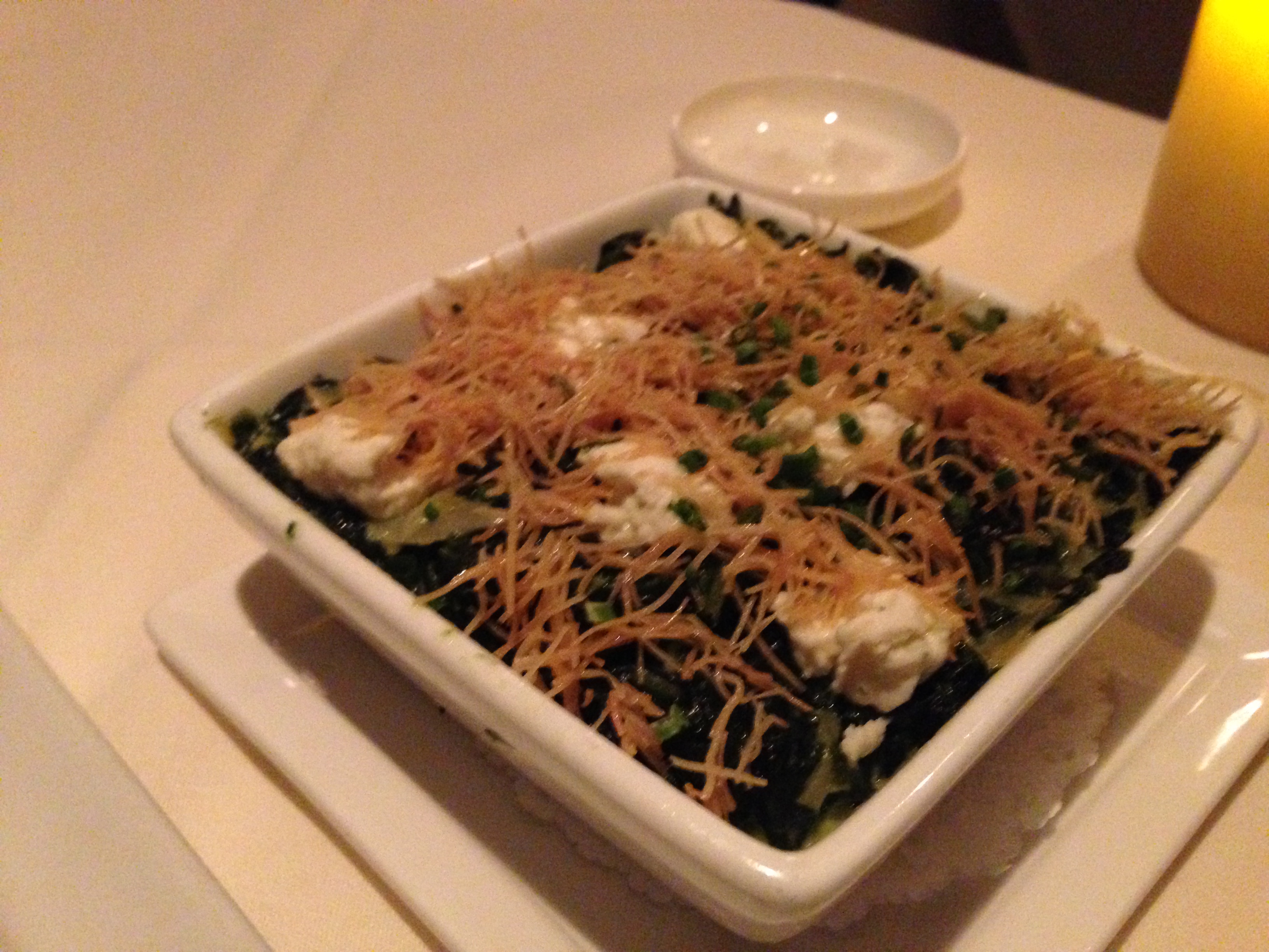 Last week some friends gave us the gift of a meal at Alexander’s Steakhouse which was probably one of the best steaks we’ve ever eaten. Kate and I ordered two appetizers, split a steak and shared a side dish. For our appetizers we ordered seared scallops and braised bone marrow. The scallops were delicious and since I’ve never tried bone marrow before, decided to take a chance. It was a good experience, but I probably wouldn’t do it again. For our main dish we ordered a 28 oz porterhouse. Food tip: When we go to steak places we like to split a porterhouse which is usually a pretty sizable piece of meat because it contains the filet on one side and the strip steak on the other side of the bone. This ends up being way cheaper than order two filet mignons, plus the meat around the bone is tastier in my humble opinion. We were told that the side dish to get at Alexander’s is the creamed spinach, I now know why. It’s rich, creamy and topped with a filo dough crust which was amazing! By this point we were pretty full, but there is always room for dessert. We split a fruit tart which was good and had some coffee. With the check they also give you grape cotton candy which was random, but awesome.