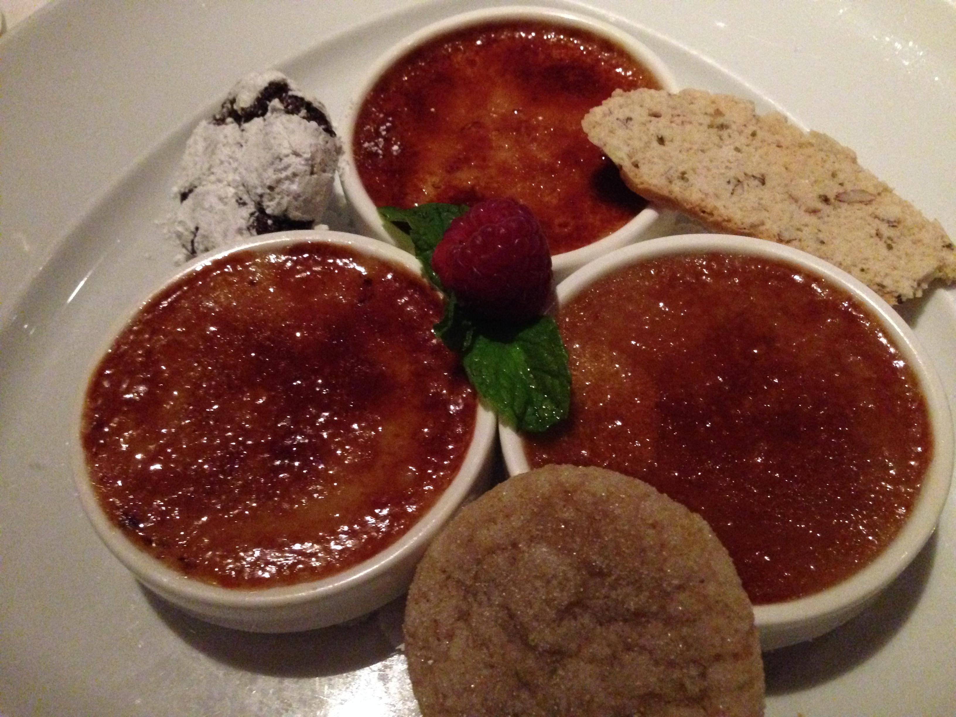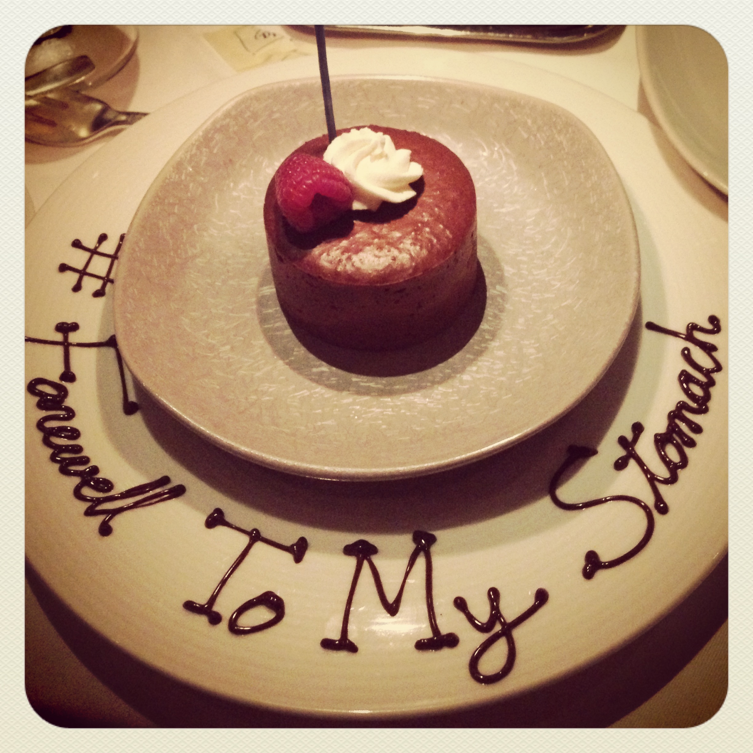 That same week some friends of ours treated us to a really special dinner in San Francisco at Gary Danko’s. Can I just say that the first thing that stands out at this restaurant is the dinning experience. I knew the service was going to be amazing when the maître d‘ spent five minutes complimenting me on my tie. The company and the food made this legitimately one of my favorite dining experiences ever. At this restaurant you can get 3 different kinds of prix fixe menu options with three courses of whatever you’d like (I think it was 3, 4, and 5 courses). You can have any combination you’d like, 2 appetizers, sure! 3 courses of duck, why not? Our trusty guides told us that 4 courses was way too much food, so we opted for 3 courses. We all got different dishes and tried a bite of each one, but I ended up starting with a lobster risotto, duck breast with duck hash, and topped it off with crème brûlée. Where to begin?! All of these dishes were absolutely delicious, although the lobster risotto and the crème brûlée were my favorite. Just to give you an idea of how over the top they go at Gary Danko’s, when you order crème brûlée, they don’t give you one… they give you three different flavors: maple, butterscotch and pumpkin. They even top the whole meal off with fresh coffee and another plate of chocolates and cookies. Lastly, our friends informed the restaurant of my farewell stomach food tour and they even made me a special cake. The night was perfect. Great friends and great food.