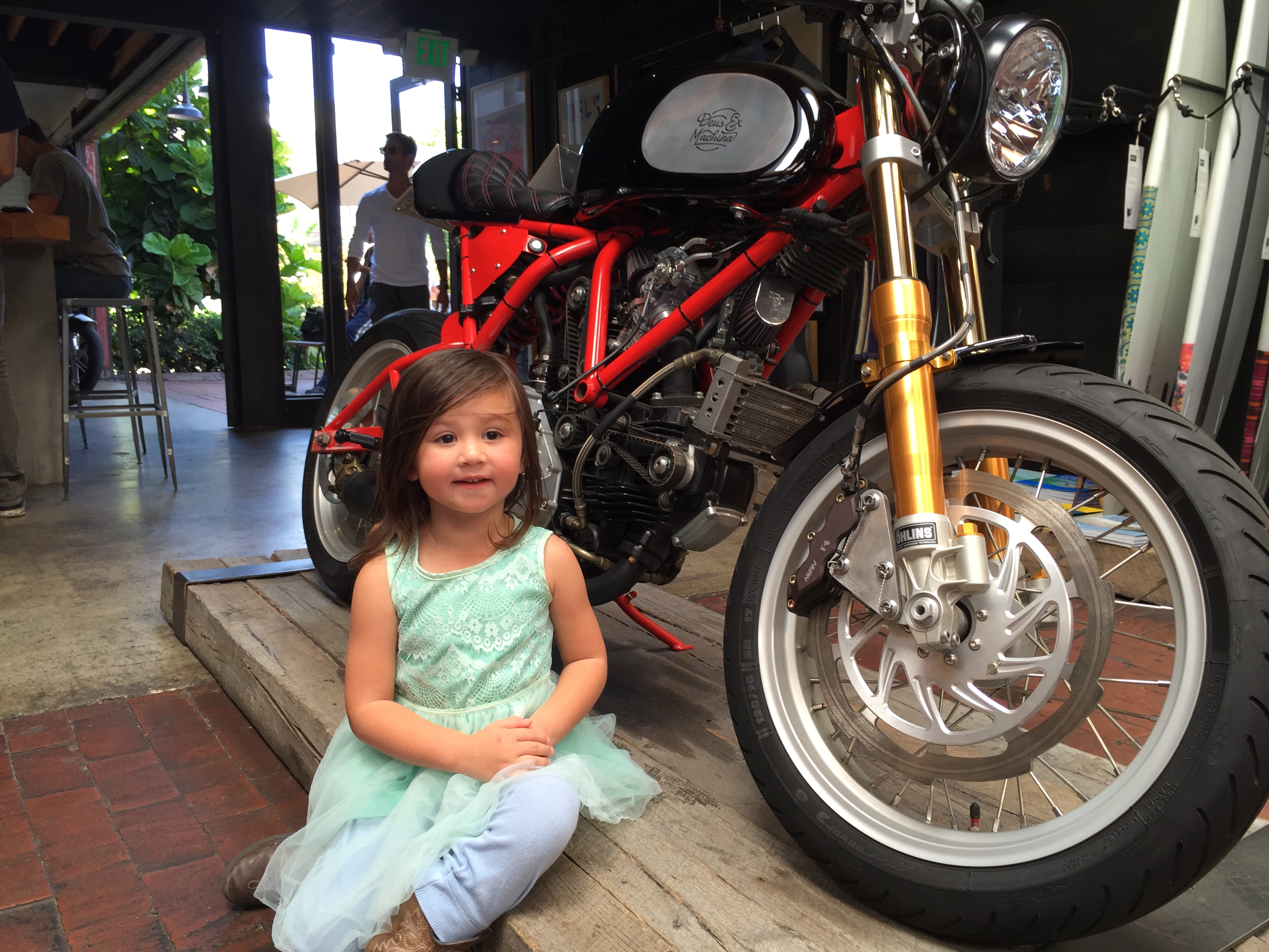 Between sitting on the beach and driving the city, Evangeline and I went on our own post-gastrectomy food tour sampling the finest coffee roasters the Southland has to offer paired with some delicious toddler-approved fare. Our first stop was at a Japanese-American fusion burger joint called the Humble Potato known for their version of the American classic which they call the hambága. Since I no longer eat red meat, I decided to go with the Tempeh with Karê which is an Indonesian soy patty chopped up with an Indian tasting spice/curry over slaw with a fried egg on top. Do I miss eating burgers? Absolutely, but living in California means there will always be plenty of options. For those who know me, food tours are incomplete without visiting new coffee shops. Before getting off the plane I knew I needed to pay homage to the place that combines my two passions: motorcycles and coffee, Deus Ex Machina in Venice Beach.
